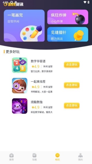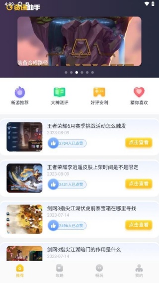 3、以清晰明了的方式呈现推荐游戏、最新发布的游戏以及专题活动,并且给出详细的游戏评测与攻略指南。