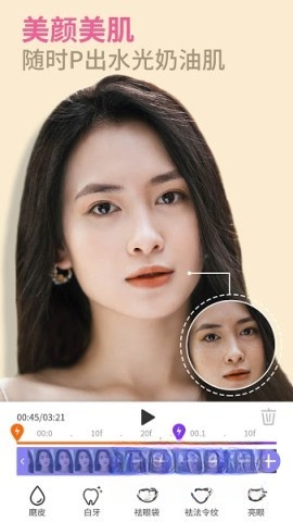 1. 运用磨皮工具,眨眼间去除皮肤瑕疵,呈现出光滑细腻的无瑕美肌。