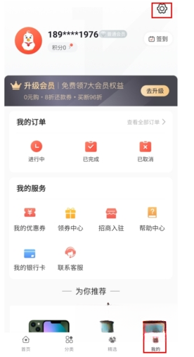 1. 于“我的”页面,点击右上角的“设置”按键。