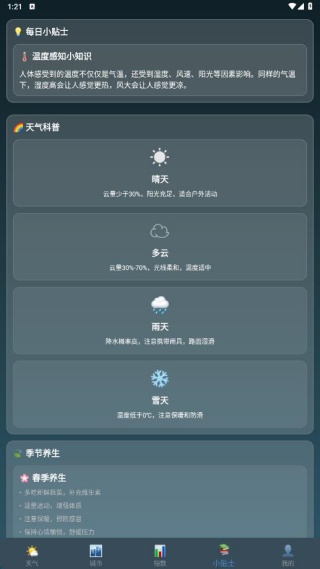 4、于小贴士页面,大家同样能够看到天气科普相关内容,持续阅读,可积累更为丰富的气象知识。