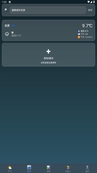 2、在城市页面,可快速添加多个城市的位置信息,出差更换城市时能实现秒速切换。
