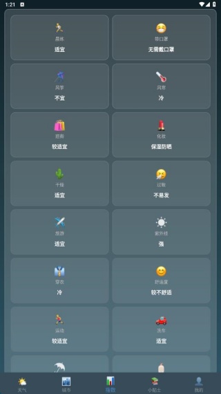 3、生活指数实现全方位覆盖,无论是穿衣、洗车还是晾晒,都能得到贴心建议,让你随时掌握贴心指数。