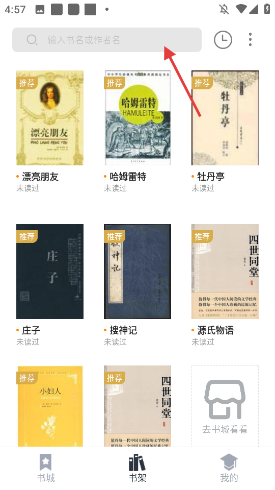 1. 轻点顶部搜索栏,输入书名或者作者名来开展搜索。