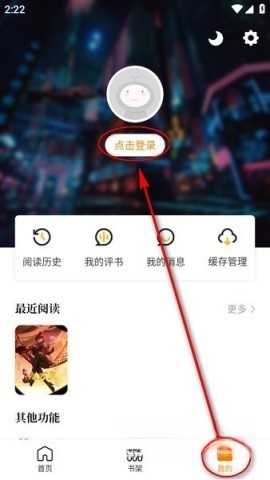 开启酷漫熊后,只需轻松点击“我的”,接着在界面中寻找到“点击登录”并进入。