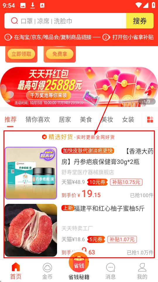 2、不仅有海量内部优惠券每天更新供应,领券购买商品后还能享受超高返利,双重优惠叠加让用户实现超级省钱。