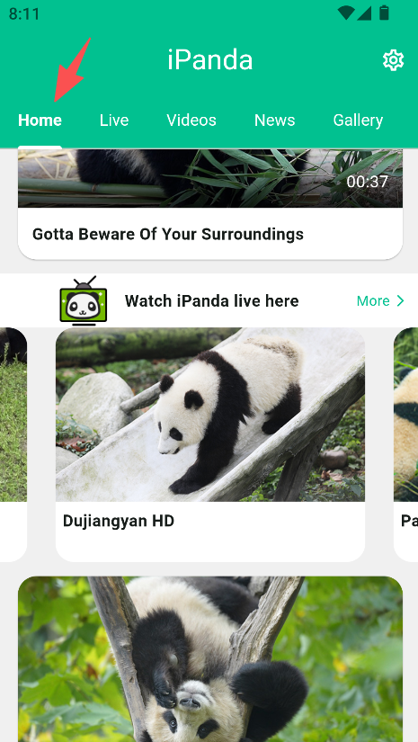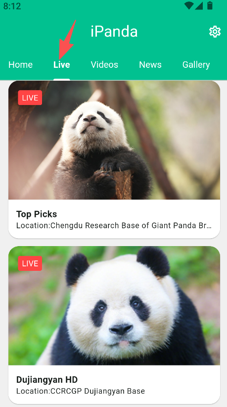 2. 轻点“Live”,即可观看熊猫的实时直播。
