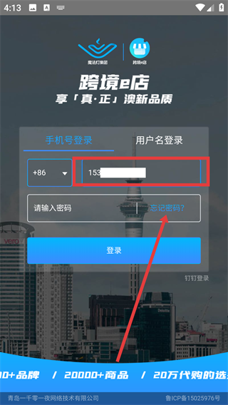 2. 在跨境e店的登录页面,找到并点击【忘记密码?】这一选项,随即会进入密码找回的手机号验证流程。