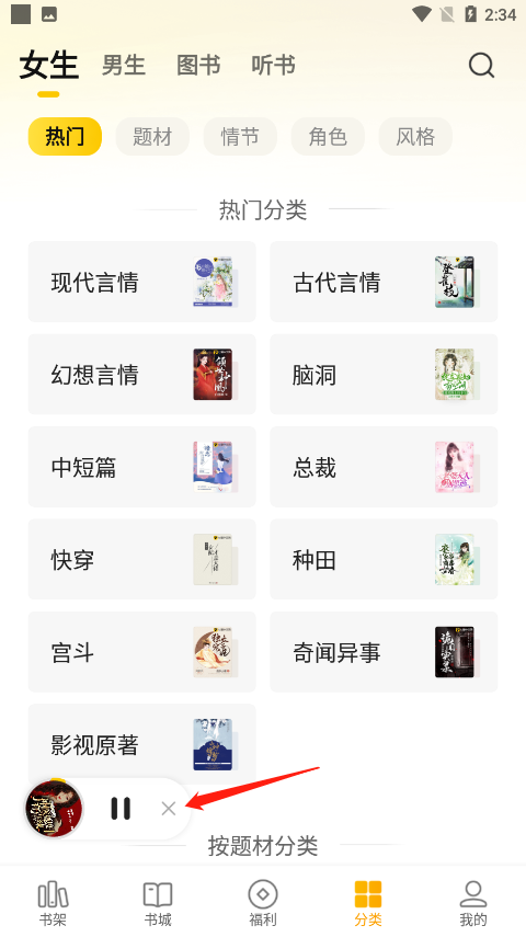 4、除了上述听书方式,你也能在书城直接挑选听书选项,点击进入你想听的小说。