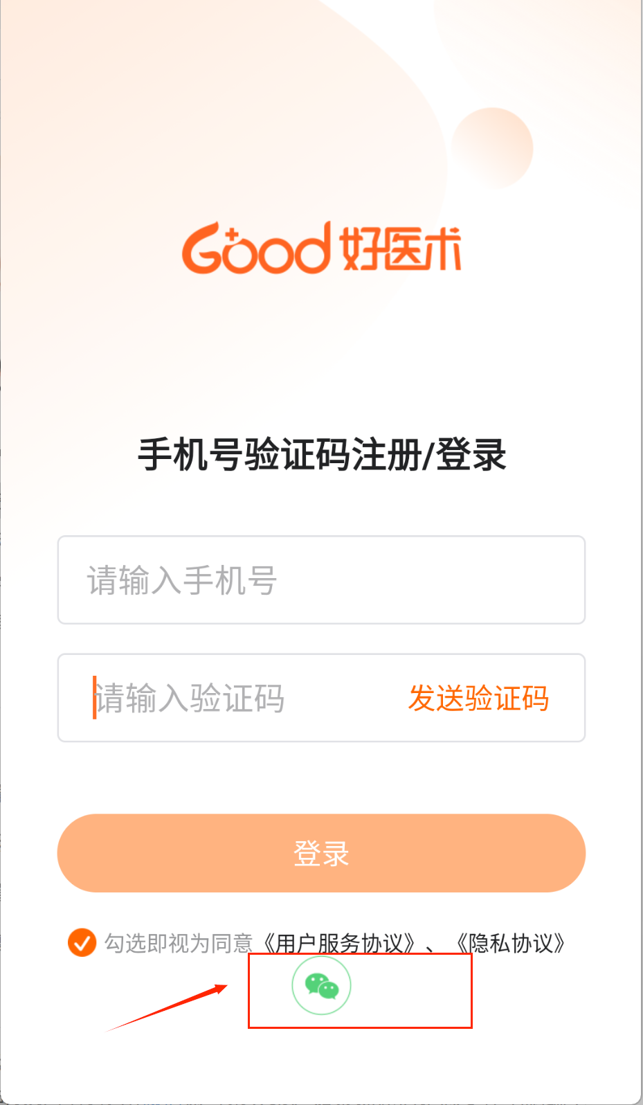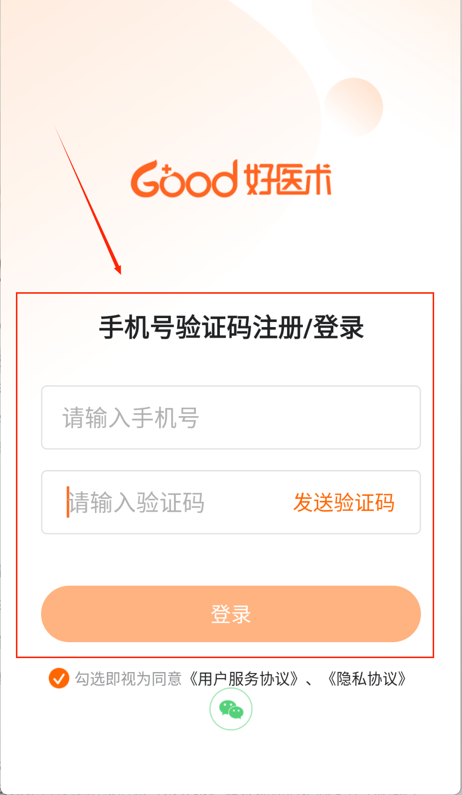 1、第一步,当我们打开好医术这个平台后,能够通过输入验证码的方式进行登录。