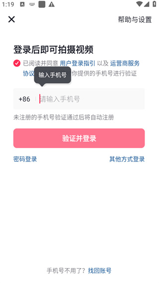 1. 打开应用,首先要进行账号注册。在登录页面输入手机号,接着点击验证并登录,整个流程的设计十分人性化。