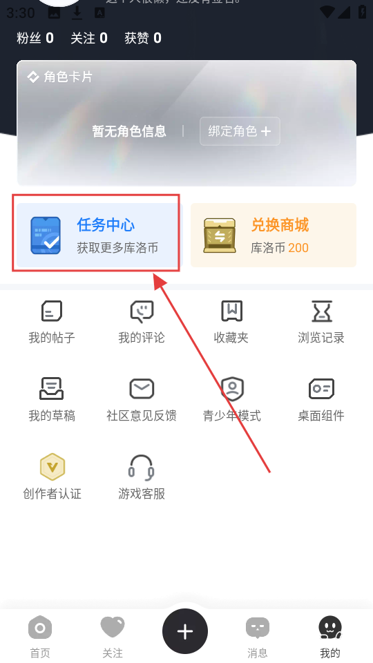 2. 于个人中心界面轻点【任务中心】,即可进入任务中心界面,查看可完成的任务。