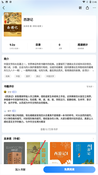 3、在书籍详情页,点击【加入书架】,将书籍添加到个人书架。
