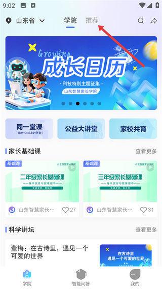 1若想浏览各类育儿课程并快速定位感兴趣的内容,只需点击页面顶部的“推荐”选项,即可切换至推荐专区进行查看。