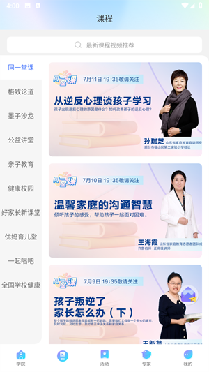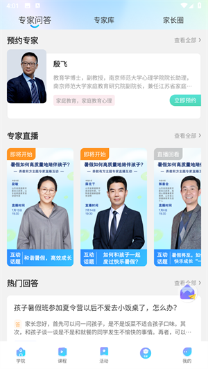 平台汇聚了山东省500余名教育专家,可为家长提供在线问题咨询及专家互动交流服务。