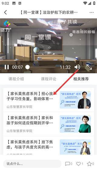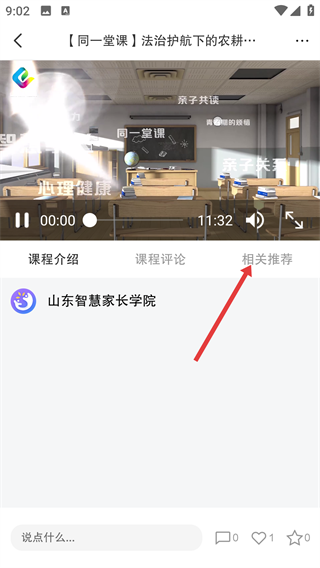 3、在课程播放页面,点击【相关推荐】,就能看到和当前课程相关的更多育儿课程,帮助拓展学习内容哦。
