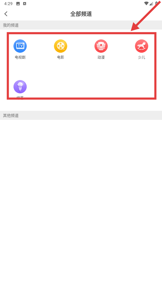 1点击界面右上角的频道菜单按钮,即可进入包含所有频道的界面。
