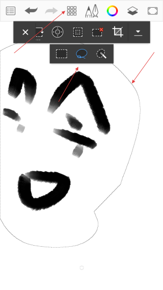 2、于选择页面,轻点【套索】,于画布之上【框选目标内容】完毕后,再点击【菜单按钮】。