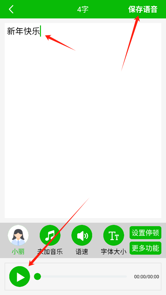2、文字转语音功能,只需输入汉字,然后点击下方的播放按钮,就能对输入的汉字进行语音播放朗读。