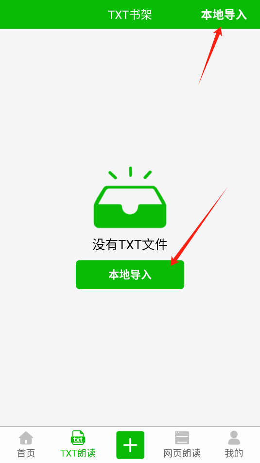3、在TXT朗读页面,点击“本地导入”,即可将编辑好的文件以语音模式朗读出来。