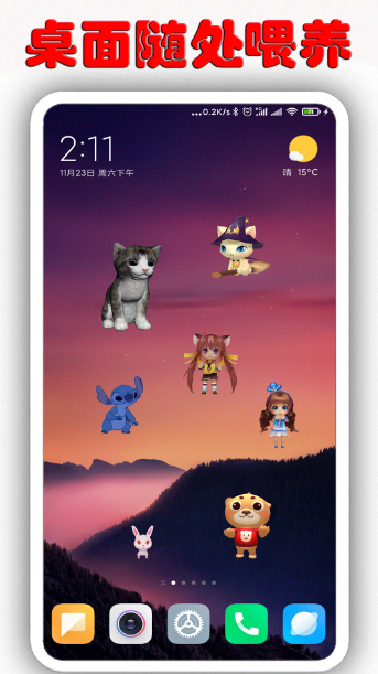 2、选择完成后,你的手机桌面上会有可爱的萌宠。