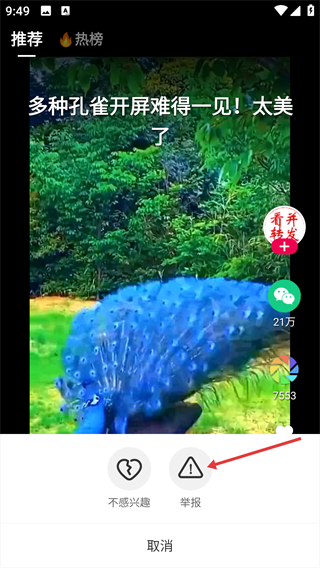 2若需对某条视频进行举报,可先进入该视频的播放界面,随后在界面右下角找到带有三个点标识的按钮,点击此按钮即可。
