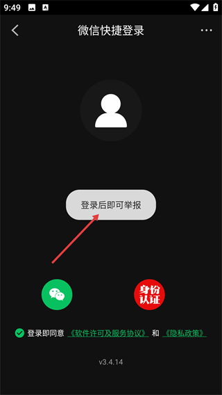 4、进入【微信快捷登录】页面,完成登录后,就能继续进行举报操作了。
