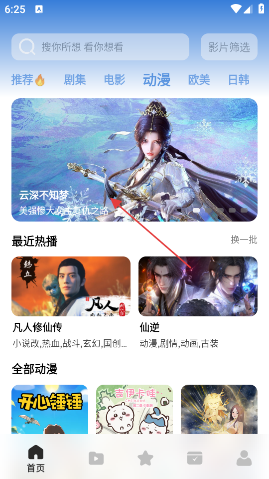 1在应用的初始展示页面,找到并点击标有“动漫”字样的分类选项,即可跳转至专门的动漫内容浏览界面。