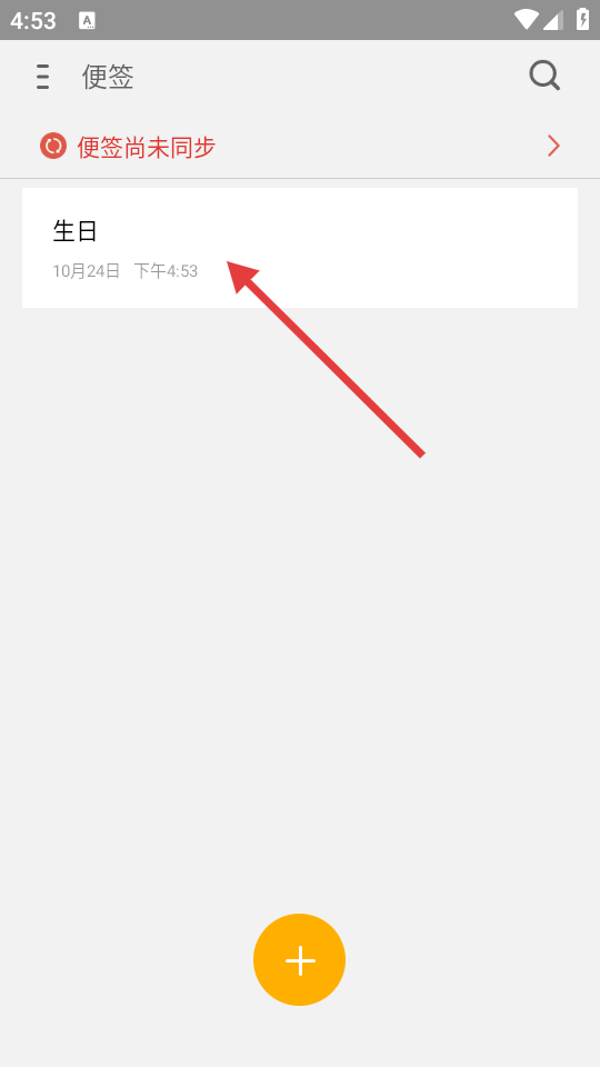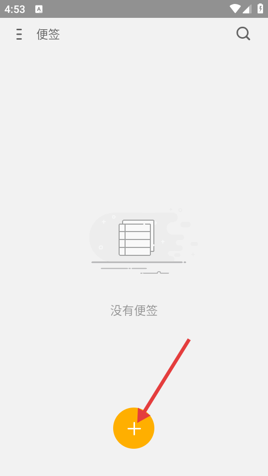 2、登录后进入便签主界面,点击底部那个黄色的“+”按钮,就能进入便签编辑页面了。