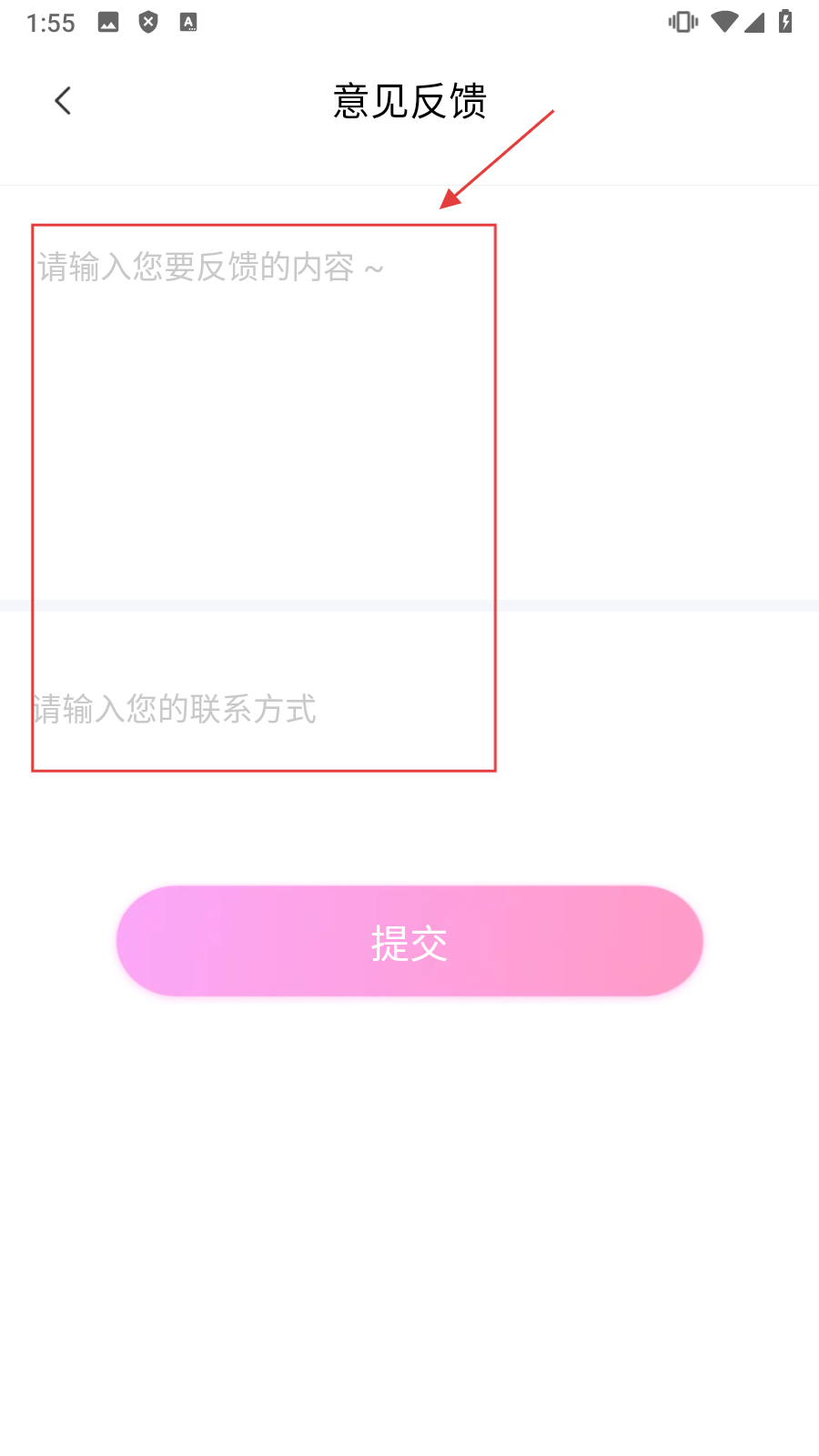 3、在意见反馈页面,填写【反馈内容和联系方式】,准备提交。