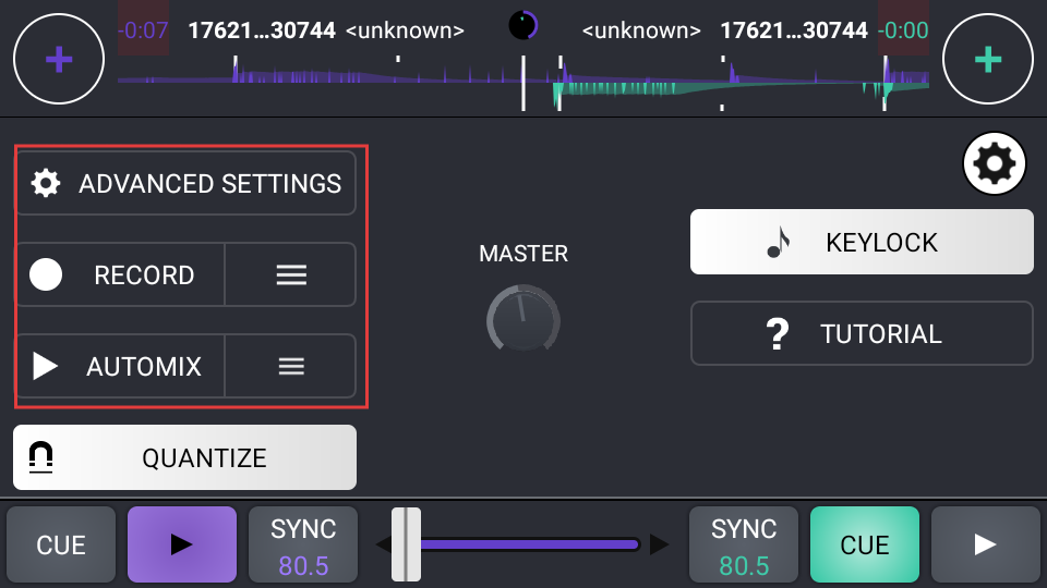 4、进入设置页面后,能够查看或调整【ADVANCEDSETTINGS(高级设置)】【RECORD(录制)】等功能选项,大家可以根据自身需求来进行音乐混音的相关操作。