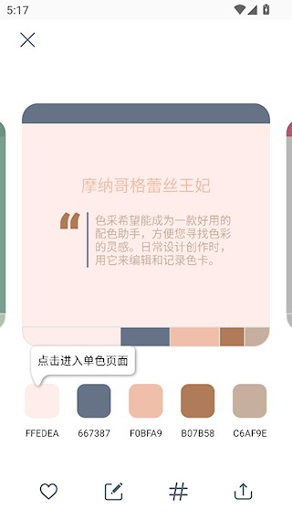 ■支持配色方案的记录与分享,同时提供颜色值的显示功能,方便您复制并使用自己的配色方案