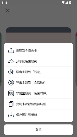 7. 记录并分享色彩搭配方案。提供多种图像分享方式,让出色的配色灵感得以留存
