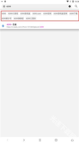 4接下来,在搜索框中输入想要查找的信息就行,比如在这里输入4399进行检索。
