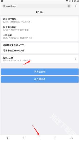 2、点击下方选项完成浏览器登录或注册操作,登录后就能实现数据同步。