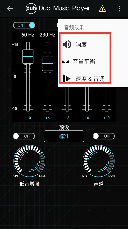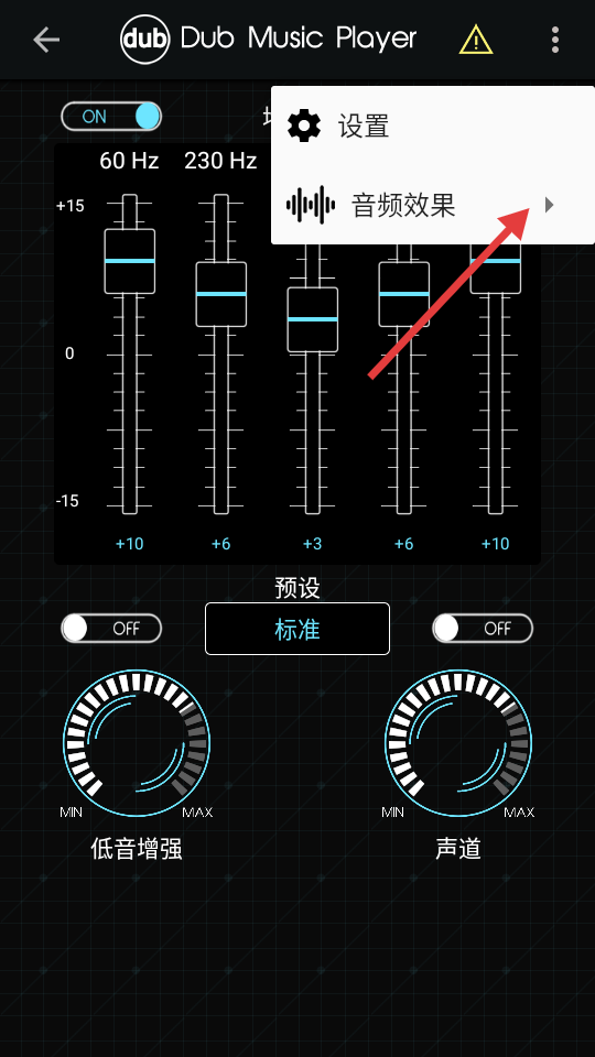 1在Dub音乐播放器的操作页面中,找到并点击标有【EQ】字样的功能按钮,即可跳转至用于调整音效的均衡器配置界面。