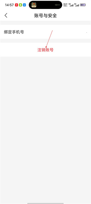 4、进入【账号与安全】页面后,能找到【注销账号】选项,该选项用于进行账号注销操作,使用时请务必谨慎。