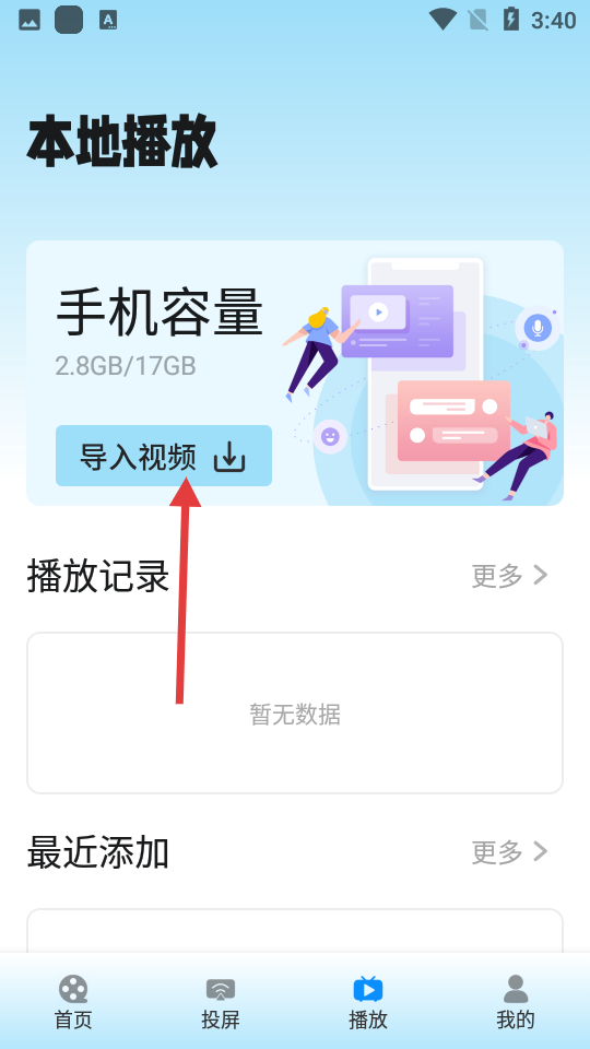 2在本地视频播放界面,点击“添加视频”选项,即可启动视频导入的相关操作步骤。