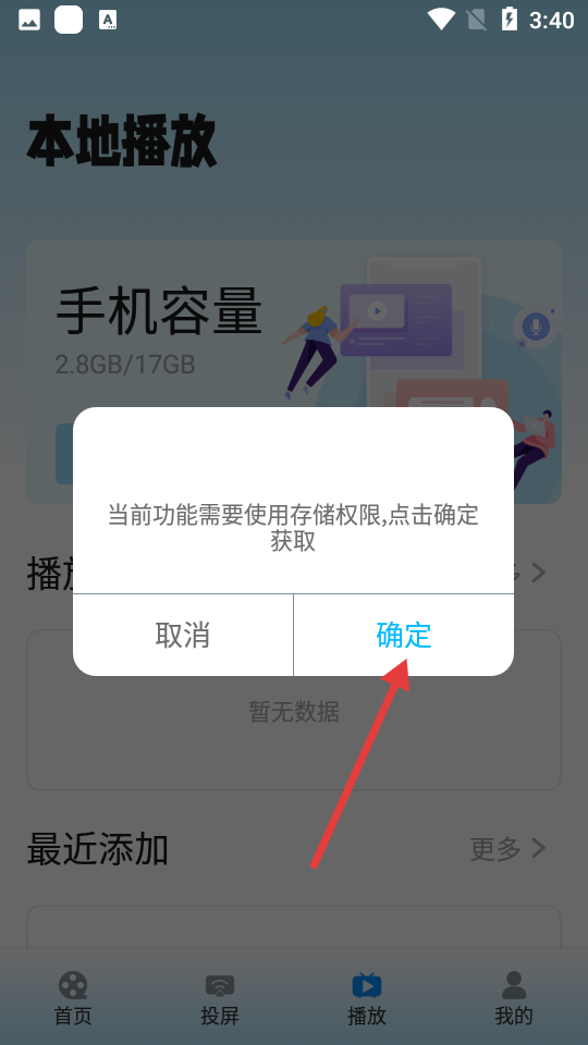 3、当弹出存储权限请求窗口时,点击【确定】按钮以获取存储权限。