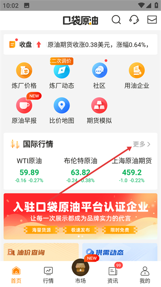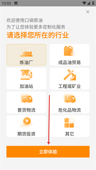 1选好所属行业后,点击“立即体验”按钮,就能进入口袋原油的主页面了。
