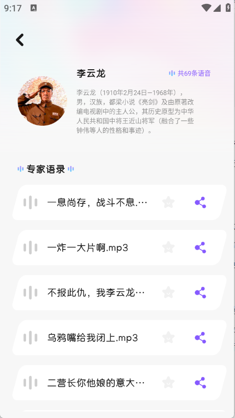 3、点击进入心仪声音的详情页面后,就能看到大量语音内容。