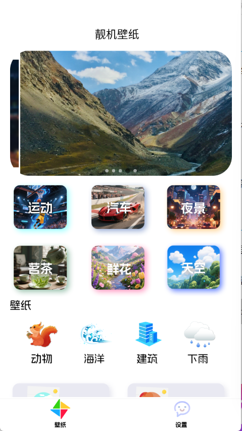 担心找不到自己喜欢的壁纸内容吗?靓机壁纸包含了很多的壁纸资源类型,不管是风景类、汽车类还是鲜花类等都有,所有的壁纸资源都是高清的,可以将喜欢的壁纸进行收藏、,壁纸资源更新速度快,快速查看自己喜欢的壁纸。