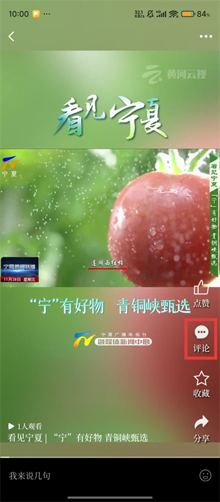 3、进入【看见宁夏】的视频播放页面后,大家可以点击页面上的【评论】按钮,这样就能参与到互动交流当中啦。