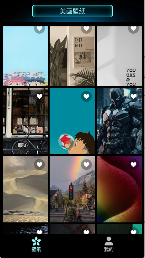 2、“壁纸”页面汇集了丰富多样的壁纸资源,通过上下滑动屏幕,你可以浏览到大量不同风格的壁纸。