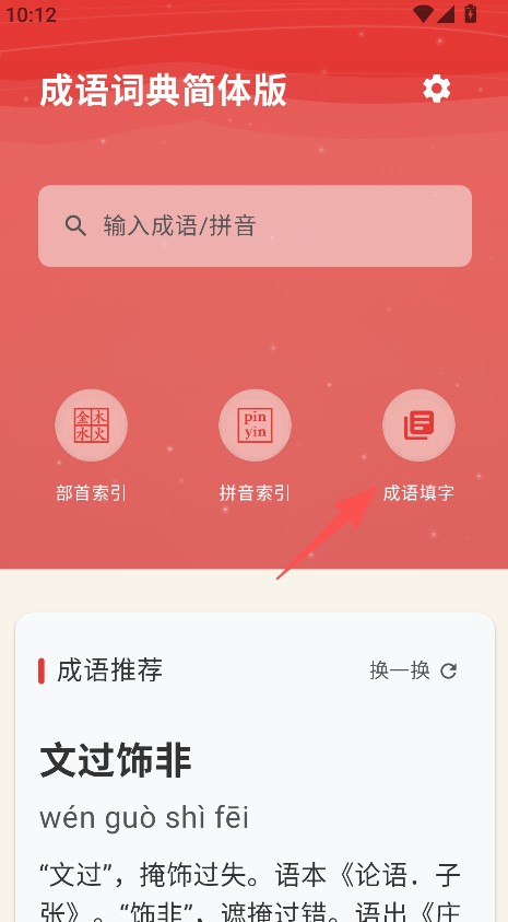 1、打开软件,选择成语填字功能。