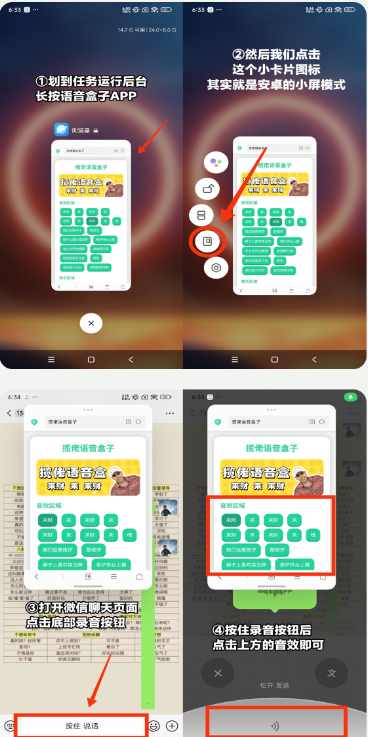 这里是微信变音教程的文字说明。以小米手机为例子,此功能仅支持有小屏功能的系统。游戏的话不支持因为做了限制对面听不到。