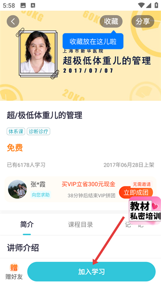 3、进入课程详情后,点击【加入学习】,就能开启课程学习,轻松汲取专业知识,很是便捷呢。
