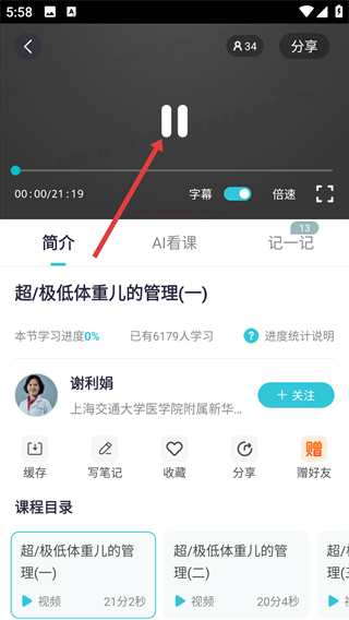 4、学习过程中,若需暂停,点击播放界面的暂停按钮,可灵活安排学习时间,学习节奏由你掌控哦。