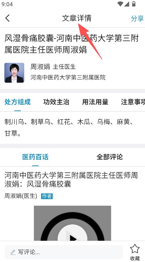 1. 药品与专业医生说明书的绑定,呈现出医生所在的医院以及职称资质,提升了风湿病医学信息的专业性与可信度,有利于获取可靠的药品相关内容。