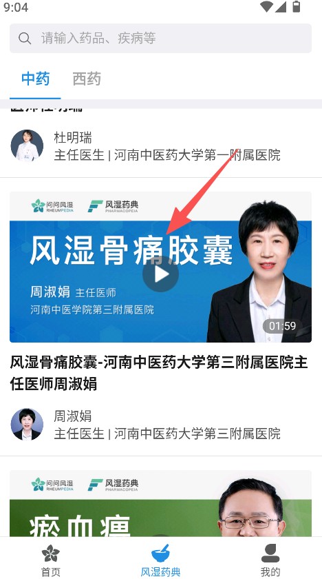 2在相关类别中,查看药品信息以及医生对这些药品的讲解内容,同时了解医生的专业职称和所在医疗机构。
