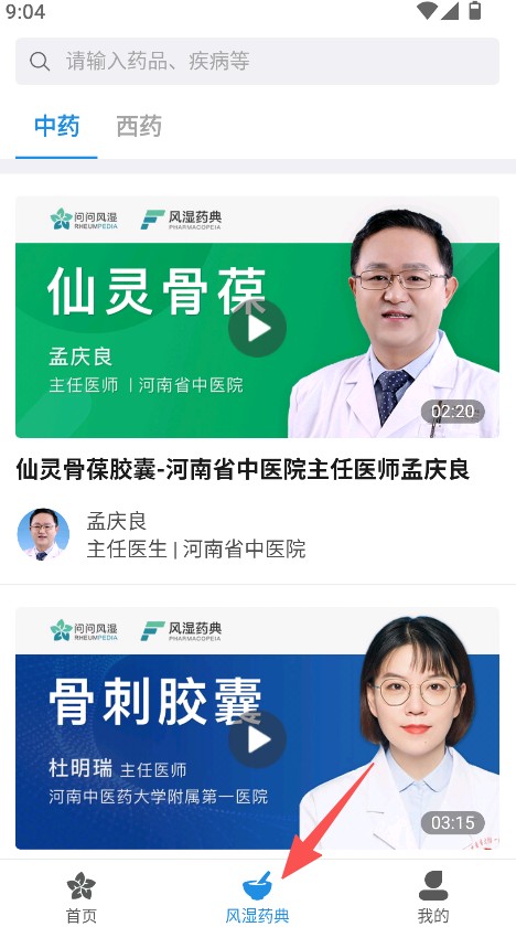 1、打开问问风湿,进入风湿药典页面后,选择中药或者西药分类。